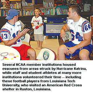Several NCAA member institutions --- assisted by quick action from the Association to permit latitude in applying an assortment of bylaws -- struggled in the aftermath of Hurricane Katrina to salvage opportunities for student-athletes to compete this fall, while others opened the doors of campus athletics facilities to temporarily house evacuees from the storm-ravaged Gulf Coast.