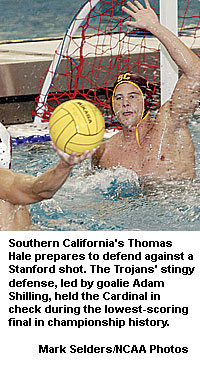 In the lowest-scoring men's water polo championship game in NCAA history, Southern California downed Stanford, 3-2, to cap a program-best 26-1 season and win a third National Collegiate Men's Water Polo title.