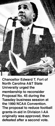 NCAA Executive Director Richard D. Schultz says at the close of business during the 1990 NCAA Convention that "there is now within the membership a very strong and urgent feeling that we need some reform. ... I think you could call this the Convention of the student-athlete. Just let me mention some of the legislative proposals passed that were directly aimed at bettering the environment for the student-athlete: summer-school aid, aid to partial qualifiers, providing graduation-rate information to prospects, reduction of practice time, scholarships for walk-ons, broken-time payments, transportation between terms. I do not know of another Convention during which so many positive things happened on behalf of the student-athlete."
