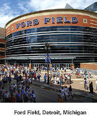 2010 -- April 8-10 at Ford Field in Detroit, hosted by the Central Collegiate Hockey Association and the Detroit Metro Sports Commission. It will mark the first time the event has been held in a dome. Detroit has been the host city for five previous Frozen Fours, but none since 1990 when it was held in the Joe Louis Arena.