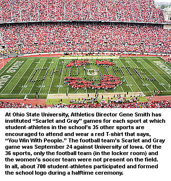 Miscellaneous: As part of Ohio State University's "September to Remember" project to help raise money for the American Red Cross and its Hurricane Katrina relief effort, Buckeye football fans stepped up to raise almost $125,000 during the four Ohio State home games during the month. The department of athletics sold the Gameday Magazine for $7 at each of the games and donated $2 from each magazine sold to the project. Fans also could make donations directly to the American Red Cross. A total of 56,373 magazines were sold with a donation of $112,736 being made to the American Red Cross. An additional $11,993.49 in cash donations was collected from fans.