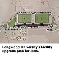 Facilities: Longwood University has announced plans to construct two competition facilities for field hockey, women's lacrosse, and men's and women's soccer. The $5.1 million project is targeted for completion this September for the upcoming fall 2005 seasons. "This project will give four field sports outstanding facilities for intercollegiate practice and competition," said Longwood Athletics Director Rick Mazzuto. "It will give our coaches great opportunities to recruit quality student-athletes and prepare our teams for success at the Division I level." The new facilities will feature both a synthetic turf field for field hockey and women's lacrosse, and a natural grass turf field for men's and women's soccer.