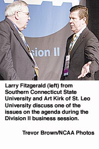 One major piece of legislation did pass without any debate. Proposal No. 10, approved by a vote of 240-5-1, will establish a Division II Academic Success Rate that will require Division II institutions to submit annual academic-performance data, as prescribed by the Management Council, as a condition of membership. The new report will provide an alternative to the report produced annually through the federal Student Right-to-Know Act that will provide a better assessment of the academic performance of all Division II student-athletes and also will provide the division with the basis for more academic-performance research.