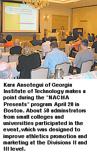 The program, known last year as "NACMA On the Road," attracted about 50 administrators from Divisions II and III institutions and conferences -- along with representatives from NAIA and Canadian institutions -- to an April 20-21 session at Boston's Colonnade Hotel.
