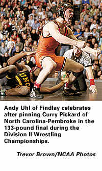 133-pound class: Andy Uhl, Findlay, pinned Curry Pickard, UNC Pembroke, 5:35.