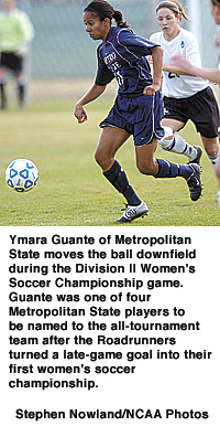 Metropolitan State sophomore forward Kylee Hanavan scored the deciding goal with 39 seconds left in the Division II Women's Soccer Championship game to lift the Roadrunners to their first title December 4 at Midwestern State.