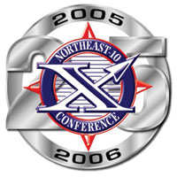 The media representatives noted that deadlines have gotten earlier and football games longer, making 7 p.m. starts undesirable for their purposes. One reporter said that what suffers with such start times is the quality of the stories since little time is left to interview coaches and players after the game. The media was candid in saying that some practices, such as preseason all-conference teams, have little value for them. However, major interest was expressed in Division II regional sports rankings -- along with frustration that the rankings are not necessarily timely nor made available at a consistent time each week (see Letter, page 4)... The Northeast-10 Conference office recently unveiled a new 25th anniversary logo, launching the one-year celebration recognizing a quarter century of competition and excellence. The logo will appear on the conference Web site, awards and merchandise and on the 2005-06 conference directory and football media guide CD-ROM. "For more than 25 years, the Northeast-10 Conference has provided a high level of competition in intercollegiate athletics and an unsurpassed commitment to excellence in academics," Commissioner Dave Brunk said. "In the fall of 2005, the Northeast-10 will enter a new era of growth with the launch of the Northeast-10 Conference Hall of Fame, all-time All-Northeast-10 teams in select sports and many other initiatives." The new logo, created by David Zonfrillo of Nally and Oldham Awards, highlights the league's current logo and pays tribute to its institutions and the student-athletes of the past and the future.