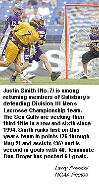 Championship notes: Salisbury has won the title five times -- in 1994, 1995, 1999, 2003 and 2004 -- and will attempt to add their sixth and third in a row this year. The Sea Gulls were undefeated through April 29 ... The Roanoke Maroons tied a school record with a 12-win season, finishing the regular season with an eight-game winning streak ... Middlebury has played in the NCAA championship game in five of the last six years, winning the title in 2000, 2001 and 2002 ... Gettysburg completed an 8-0 run through the Centennial Conference with a 13-12 win over Franklin & Marshall. The Bullets also have a win this season over Middlebury.