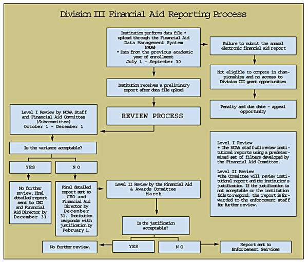 For several years, Division III members debated various ways of checking compliance with financial aid legislation, looking for an effective yet efficient way to monitor schools' financial aid practices. At one point, mandatory audits of institutions' financial aid records were proposed, but abandoned as impractical.