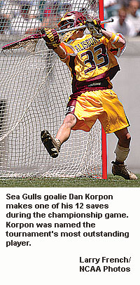"I've been a Danny Korpon fan for years," said Salisbury coach Jim Berkman. "You don't win championships without a great goalie, and Danny has proven over and over he's exactly that. He played a great game today and deserves the recognition he's getting now."