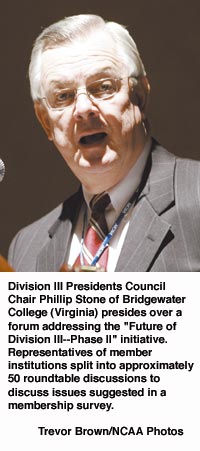 The means of addressing those challenges remains an open question, Division III Presidents Council Chair Phillip Stone told forum attendees.