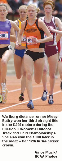 In the most competitive Division III Women's Outdoor Track and Field Championships ever, host Wartburg combined distance specialist Missy Buttry's two individual victories with timely scoring in four other events to win its first team title in the sport.