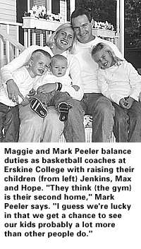 The only known husband and wife to coach the men's and women's basketball teams, respectively, at an NCAA institution, the Peelers and their three small children move at a frenetic pace during hoops season, but they wouldn't have it any other way.