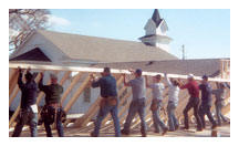 For a number of years, Mike Wissink, who directs the campus ministry at Ferris State and serves as chaplain for the football and basketball programs, has organized a mission trip for the Fellowship of Christian Students (FCS) organization. While the trips occasionally are to poverty-stricken communities, he generally aims for projects in communities affected by natural disasters. This spring's destination was Engelhard, North Carolina, where residents still are dealing with the aftermath of Hurricane Isabelle, which tore through the town in 2003.