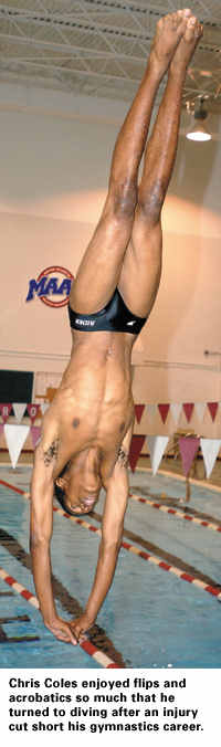 "I don't know what it is about it, but I really enjoy being able to flip and being able to jump off the boards," said Coles, who is majoring in computer information systems with a minor in radio/television communications. "You're 20 feet off the water and you're able to do a couple of things, then hit the water and have someone give you a good score for it. I love the sport in general, just like I did in gymnastics. I can't see myself not doing a sport. That's why I've stayed in it for so long."
