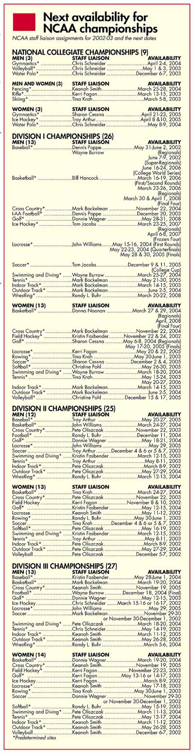 Dates and Sites -- Next availability for NCAA Championship
