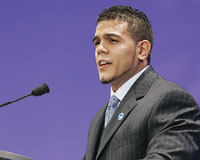Today’s Top VIII recipients honored during the evening were Samantha J. Arsenault, swimming and diving, University of Georgia; Sarah Dance, swimming and diving, Truman State University; Carter Hamill, cross country and track and field, Amherst College; Nick Hartigan, football, Brown University; DeMeco Ryans, football, University of Alabama, Tuscaloosa; Richelle Simpson, gymnastics, University of Nebraska, Lincoln; Christine Sinclair, women’s soccer, University of Portland; and Jamie Southern, softball, Fresno State University.
