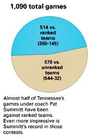 Lady Vols head coach Pat Summitt has not only produced a number of outstanding players during her 32 years at the helm of the Tennessee program, but a number of successful coaches as well. Currently, the list of coaches at the professional, collegiate and high school levels stands at 59 and represents 39 former players, 13 former graduate assistants, five assistant coaches and two managers, who now are serving or have served in the coaching ranks.