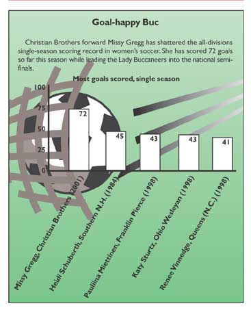 The first Division I Women's Soccer Championship game was played November 21, 1982, and like Saint Louis on the men's side, the first champion has become the most prolific. The University of North Carolina, Chapel Hill, winner of 16 titles, won the first by a 2-0 count over the University of Central Florida. The 19-2 Tar Heels scored goals late in each half, the second by all-tournament-team member Amy Machin. North Carolina has advanced to every title game but one since then and had an all-time tournament record of 66-3 entering 2001.