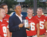 During a special ceremony at halftime of the school’s January 3 men’s basketball game, Illinois Lt. Gov. Patrick Quinn, Northern Illinois Director of Athletics Jim Phillips, current head football coach Joe Novak and about 20 members of Fitzgerald’s family were on hand to honor him with his varsity letter just one day shy of his 80th birthday.