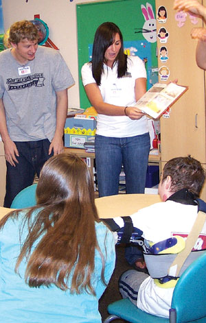 Student-athletes from the Northern Arizona University athletics department visited the Phoenix Children’s Hospital this spring for "an eye-opening experience," according to basketball student-athlete Paul Meynen. "When you see a 19-month-old with leukemia and other children with immune system disorders it makes you realize how blessed you are," he said. Meynen was joined by Kelly Busche (swimming), Maria Hechanova (swimming), Rachel Blackman (basketball), Lindsey Carey (soccer), Geoff Ducksworth (football), Will Hensley (basketball), Brittany Janousek (athletic trainer), Kaitlyn Manakas (soccer), Mikaela Knutson (volleyball), Roni Greenwood (volleyball) and Kim Biswanger (basketball). Meynen organized the event through the school’s Student-Athlete Advisory Committee. The student-athletes read a children’s story and created dioramas (scenes in a shoebox) with the patients.© 2010 The National Collegiate Athletic Association