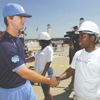Pitching in for Habitat - During the Men’s College World Series in Omaha, student-athletes from Oregon State University and the University of North Carolina, Chapel Hill, participated in a Habitat for Humanity build. Team members helped raise walls and construct the skeleton for a new house. Four local TV affiliates from NBC, ABC, CBS and FOX covered the build, with coverage also in the Omaha World-Herald. NCAA national office staff helped coordinate the event at the championship to promote volunteerism for Habitat for Humanity.
