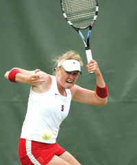 “We were twitching a little bit in the beginning of the match today, but we got ourselves righted and we had a good performance at No. 2 doubles,” said Stanford head coach Lele Forood. “We went out and started to play our game a little bit more in the singles and we certainly broke out to some nice leads, at five and six, especially, and Theresa (Logar) went out very quickly.”