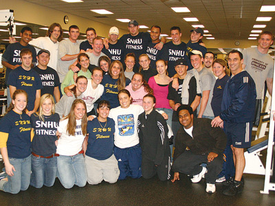 Helping children — Southern New Hampshire University recently donated another $2,500 to Children’s Hospital at Dartmouth following the recent fifth annual SHNU Fitness Challenge. The event, which has generated more than $14,000 in donations from university students, faculty and staff since its inception, again was organized by Vincent Zuccala, the school’s head athletic trainer. SNHU students collected pledges before this year’s event, and then took part in a variety of activities — including cardio exercises, weightlifting and calisthenics — at the university’s 5,000-square-foot fitness center. Winners in each activity received prizes, and everyone was eligible for raffle prizes. “This is a wonderful event that allows individuals to help themselves through physical activity and exercise, but much more importantly enables us to help children who are not as fortunate,” said Zuccala, who also serves as SNHU’s fitness director. The children’s hospital, which is part of the Dartmouth-Hitchcock Medical Center, is New Hampshire's only children's hospital and provides the only pediatric intensive care unit (PICU) north of Boston.