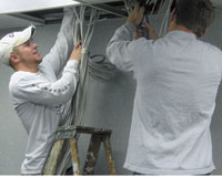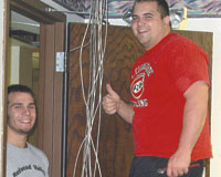 The St. Cloud State University wrestling team recently helped the local Red Cross with a construction project. The Red Cross recently purchased a new building and was working to bring the building to code. The task of the Husky wrestlers was to tear out the old communication wires due to the fact that plastic coating on the wires would be very toxic in the case of a fire. The team worked in three groups each equaling one hour shifts per group. All wires were then recycled and brought in for cash to the organization. "The State Cloud State wrestlers did a great thing today," said assistant coach Severin Walsh. "We are very fortunate at SCSU to have such a willing and giving group of young men."