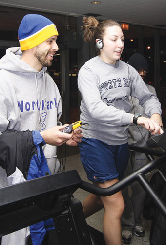 Running for Habitat — North Park University’s men’s and women’s cross country teams recently organized a 24-hour fund-raiser to collect money for Habitat for Humanity. The student-athletes took turns running on a treadmill to see how many miles they could complete in a day. “Our goal was to run over 175 miles,” said men’s coach Elliott Nott, “but it’s hard to keep your legs moving in the late hours when your body wants to sleep.” Donations were collected either as a flat amount or an amount pledged per mile completed. Half of the proceeds are going to Habitat for Humanity, while the other half will be used for development of the Viking cross country teams. “This is an incredible opportunity for us to use our talents and gifts to better serve others,” said women’s coach Tracey Murnane. “Their truly selfless nature is amazing; during their down time they would rather be active and helping others than enjoying the little free time that they have.”