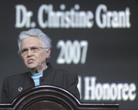 Longtime University of Iowa athletics administrator Christine Grant in her acceptance of the NCAA President’s Gerald R. Ford Award urged NCAA Convention attendees to work collectively to maximize participation opportunities for both young men and women.