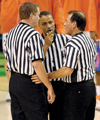 Verne Harris (center), who worked a 2007 national men’s semifinal game between Florida and UCLA, with Tom O’Neill and Curtis Shaw, expects more scrutiny for officials in all sports for the upcoming year.