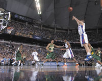 Compare that to the 2005 title game between the University of North Carolina, Chapel Hill, and the University of Illinois, Champaign. North Carolina prevailed, 75-70, relying on the inside play of Sean May and an efficient 9-of-16 from three-point range. Illinois was the more perimeter-oriented team, finishing the game 12-of-40 from beyond the arc.
