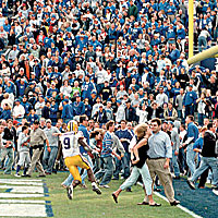Kentucky fans were primed to celebrate a home-field upset of LSU as the Tigers found themselves at their own 26-yard line with two seconds left in the game. Feeling confident of stopping one last play, Kentucky players on the sideline doused coach Guy Morriss in Gatorade, and fans stormed the field under a fireworks display as LSU quarterback Marcus Randall heaved a pass downfield.