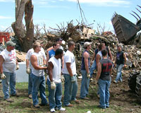 Fort Hays State University football players faced their toughest opponent when they went to Greensburg, Kansas, May 10 to help alumnus Shawn Starr recover from a devastating tornado. Currently the athletics director at Greensburg High School, Starr was Fort Hays State’s middle linebacker in 1994 and 1995. His home was destroyed May 4 when an EF5 tornado leveled the town.