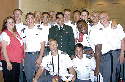 Army marches to Houston — The U.S. Military Academy men’s soccer team visited the Texas Children’s Hospital during their recent trip to Houston for a scrimmage against Southern Methodist University. Hosted by the West Point Society of Greater Houston, the Black Knights visited young heart patients before preparing for a preseason contest against the nationally ranked Mustangs. It was also a homecoming for eight members of the team who are native Texans, including four (seniors Chris Conklin, Chase Spruill, junior John-Michael Gallogly and sophomore Evan Seale) who call Houston home. In the scrimmage, Army senior Chase Hunter converted a penalty kick in the second half for the Black Knights’ lone goal in a 2-1 match played in front of a large group of friends and family.