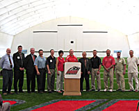 The University of New Mexico held a grand-opening celebration for its new indoor football practice facility August 29. The Lobos began practicing on the field in mid-August, just five months after construction began.