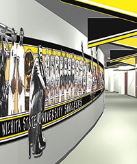 Facilities: Wichita State University launched its Next Level Project to upgrade the design and appearance of the lower level concourse at Charles Koch Arena. The project, made possible by a donation from Koch Industries, Inc., was designed by Nimlok Kansas/Image Resources and will continue the theme in the arena bowl and concourse to the lower level locker rooms for men’s and women’s basketball and volleyball, auxiliary training room, the weight and conditioning rooms and media and interview rooms. “By providing a highly polished look with more colorful art about Wichita State athletics, the project will provide a more festive atmosphere for our student-athletes as well as enhance the overall facility,” said Athletics Director Jim Schaus. The project is expected to be complete later this month ... The University of Iowa Board of Regents adopted a policy that will allow buildings and academic units to be named for donors who are individuals or that are corporations. The policy urges due diligence before the gifts are accepted and gives examples of categories of people or entities that would be eligible for such an honor, including alumni with close ties, distinguished Iowans, persons who have made an outstanding contribution to a field of study, or donors who have made significant contributions and employees.