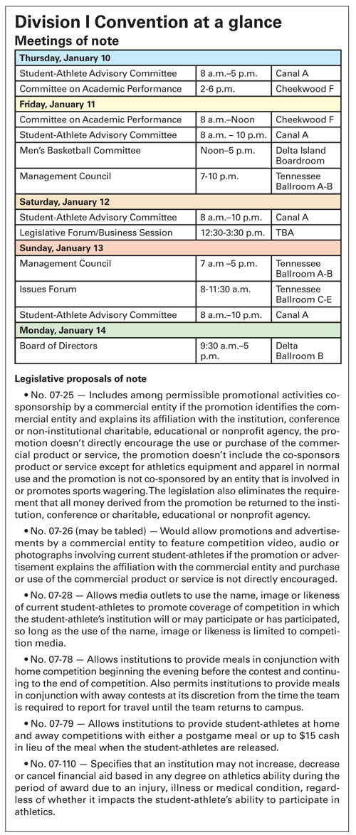 At the 2007 Convention, delegates overturned a rule that would allow graduate student-athletes who want to transfer to a new institution to compete immediately. They also upheld a Board defeat of a proposal that would have added a 12th game in the Football Championship Subdivision.