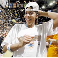 Tennessee’s Candace Parker, voted most outstanding player of the tournament, contributed 17 points and seven rebounds in the Lady Vols’ 59-46 championship-game win over Rutgers. Jamie Schwaberow/NCAA Photos.