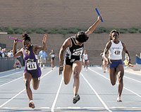 1,600-meter relay: Lincoln (Mo.) (Monique Robinson, Davita Prendergast, Meleshia Spencer, Carla Thomas), 3:32.31 [meet record; old record 3:33.28, Lincoln {Mo.} (Yvonne Andrews, Shelly Berth, Latonya Wheeler, Beverly Grant), 1997.