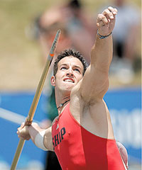 Javelin throw: 1. Nate Reider, Shippensburg, 66.19 (217-2); 2. Tyson Allen, Emporia St., 66.12 (216-11); 3. Shane Neal, West Chester, 64.61 (212-0); 4. Andrew Vogelsberg, Emporia St., 64.02 (210-0); 5. Nicholas Bawden, Humboldt St., 62.16 (203-11); 6. Matt Litzinger, North Dakota, 61.99 (203-4); 7. Jon Rozborski, Cal St. Chico, 61.87 (203-0); 8. Matt Fick, North Dakota, 60.53 (198-7).