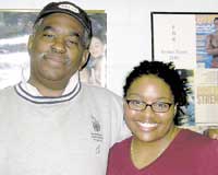 Tiffany Quash, an NCAA athletics administrative intern at Mount Holyoke College, visits in Philadelphia with swim coach Jim Ellis, the subject of the movie “Pride,” now playing nationally in theaters.