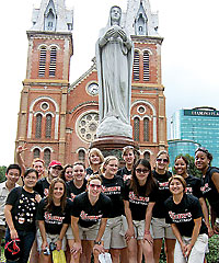 In addition to competing on the volleyball court and engaging in community-service endeavors, the team took time to explore several sites in the host country, including the Notre Dame Cathedral and the Vietnam War Remnants Museum in Ho Chi Minh City, and the Temple of Literature and the Hoa Lo Prison in Hanoi.