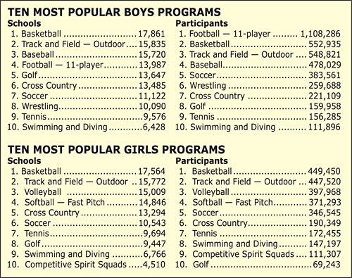 “This is certainly another great report on the interest of high school sports in our nation’s schools,” said NFHS Executive Director Robert F. Kanaby. “The fact that we experienced all-time records for both girls and boys reflects the fact that the high school sports participation experience is more viable than ever and is of great interest to our nation’s young people. In addition, the results support the NFHS 2008-11 strategic plan, in which the organization committed to providing stronger leadership and support for high school athletics and fine arts activities.”
