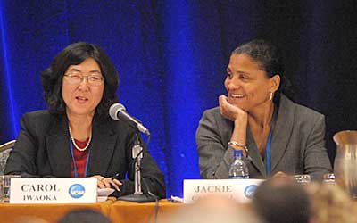 Almost as soon as she left the national office for her first stint at the Atlantic-10 (she returned after the two campus stops), Campbell became involved in the governance of the division from the membership side. When she left the national office, her title was assistant chief of staff for Division I, and she was the staff member at the side of the Management Council chair. As the Management Council chair for the last year – and the last chair of the group in its current incarnation, she said it’s gratifying to be on the other side.
