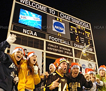 The 11th version of the game drew a neutral-site record crowd of 23,010 at Finley Stadium/Davenport Field December 14 and produced a scene that the locals will cherish. The game itself was memorable – Appalachian State, noted for its season-opening upset of Michigan, captured an unprecedented third consecutive national title when the Mountaineers dispatched Delaware, 49-21.