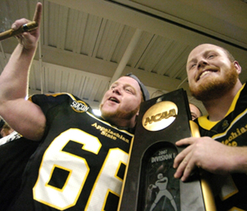 Offensive linemen Scott Suttle (66) and John Holt of Appalachian