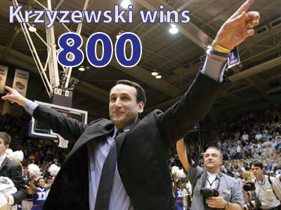 Krzyzewski became the sixth Division I men’s coach to reach the milestone and is now 800-264 in his 33rd season.