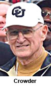 Colorado was 67-49-2 in Crowder’s 11 seasons as coach, and he is credited with turning the program into a national football power. Some of his coaching highlights included road wins at No. 9 LSU and No. 6 Ohio State in 1971, a victory against No. 4 Penn State that ended the Nittany Lions’ 31-game unbeaten streak in 1970, a 49-19 win over a 10th-ranked Air Force team in 1970 and an upset of No. 2 Oklahoma in 1972.